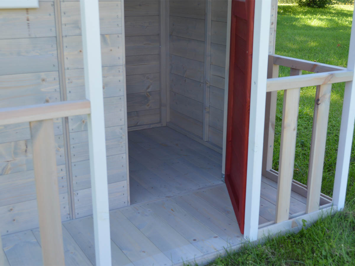 Vrtna igralna hiška Lisička je narejena iz lesa iz trajnostnega gozdarstva in jo popestrijo rdeči detajli in beli okrasni elementi. Varnost vaših otrok zagotavlja kakovostna izdelava in zaobljeni robovi.