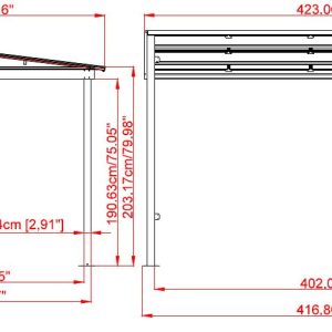 Nadstrešek nudi izjemno snežno obremenitev 125 kg/m² in vsi aluminijasti deli so trajno brez rje. Streha je sestavljena iz 8 mm dvojnih stenskih plošč in dveh ojačanih drogov. Te komponente zagotavljajo posebno visoko stabilnost in so odporne na vremenske razmere, kot so dež, sneg ali sonce (UV).