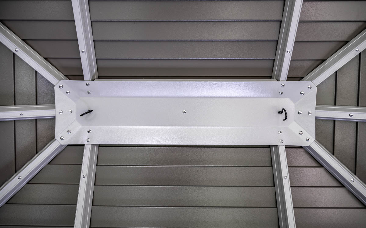 Masivna konstrukcija je izdelana iz odpornega, prašno lakiranega aluminija (debelina stebra 7,6 cm). Tudi vijaki so iz nerjavečega jekla. Paviljona pozimi ni treba razstaviti.