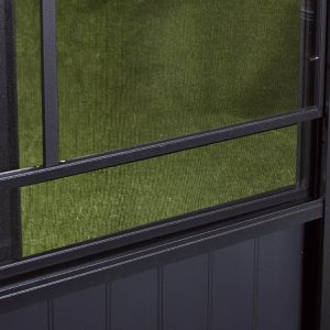 Kontrolirano prezračevanje skozi 12 oken (po eno v vsakem stenskem elementu – 94×74 cm ŠxV), sestavljenih iz mrež proti komarjem in okna iz PVC folije, ki se ne trga. Okno se preprosto potisne navzdol za prezračevanje in odstrani za čiščenje v dveh korakih.
